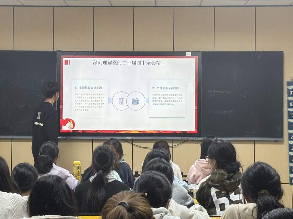 各班团支部通过团支部书记带头领学、团员青年集体研读、视频讲解等方式学习了《中国共产党第二十届中央委员会第四次全体会议公报》及《中共中央关于制定国民经济和社会发展第十五个五年规划的建议》等文件精神,帮助同学们准确把握党的二十届四中全会核心要义,了解“十四五”时期重大成就与“十五五”规划宏伟蓝图。有效引导团员青年将个人理想融入国家发展大局,以钉钉子精神推动全会精神学习贯彻走深走实。