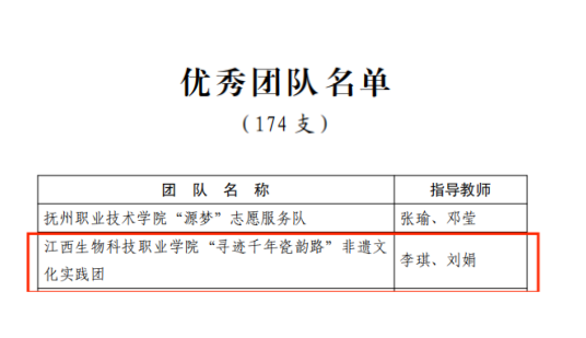 我院“寻迹千年瓷韵路”非遗文化实践团荣获2025年江西省大中专学生志愿者暑期“三下乡”社会实践活动“优秀团队”荣誉