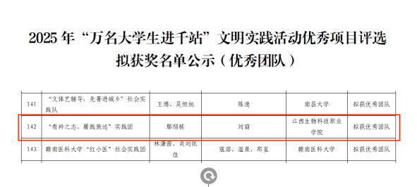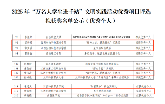近日,2025年江西省大中专学生志愿者暑期“三下乡”社会实践活动、“万名大学生进千站”文明实践活动评选结果公布,我院在这两项活动中表现优异,荣获多项荣誉。
