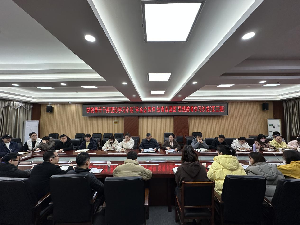 为深入学习贯彻党的二十届四中全会精神,精准把握“十五五”规划对教育事业的部署要求,切实提升我院青年干部的理论素养与履职能力,12月23日下午,我院组织青年干部理论学习小组成员于行政楼六楼会议室开展“学全会精神 绘青春蓝图”青年干部理论学习小组学习沙龙(第三期),院党委委员、副院长王加文出席活动。